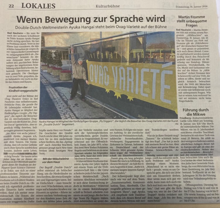 有限会社OVER THUMPZ所属のプロダブルダッチチーム FLY DIGGERZ(フライディガーズ) は、2025年年末から2026年年始にかけて、ドイツで開催された国際的なエンターテインメントショーに出演しました。